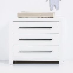 De Bopita Mika Commode kenmerkt zich door de afgeronde hoeken en de eiken accenten. Dankzij de neutrale vormen en kleuren is deze commode geschikt voor zowel in een jongens als meisjes kamer. Verder is de commode gemaakt van hoogwaardig MDF en eiken materiaal. Daarnaast is de commode perfect te combineren met andere producten van de Bopita Mika serie. Het is ook mogelijk om de commode uit te breiden door middel van een bladvergroter, dit maakt het verschonen van je kindje een stuk gemakkelijker.