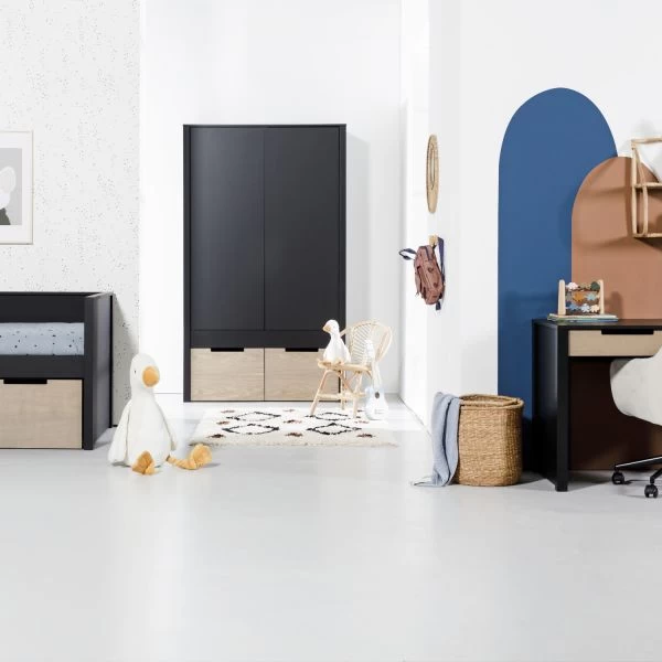 Europe Baby Ralph Kinderkamer Zwart / Accent Hout Look | Bed 90 x 200 cm + Bureau