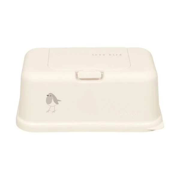 In deze Funky Box Lovebird Easy Wipe Cream kan je de billendoekjes van je kindje opbergen. De easy wipe box is handig voor onderweg en een vrolijke accessoire op de babykamer. De speciale opening zorgt ervoor dat het volgende doekje altijd te voorschijn komt en de box is goed afsluitbaar, zodat de doekjes niet uitdrogen. De easy wipe box is gemaakt van hoogwaardig materiaal en eenvoudig met een vochtige doek schoon te maken.