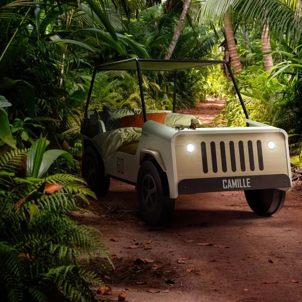 Het Gautier Kids JIIP Carbed is een kwalitatief bed in een echte safarilook! Uiteraard kan je kind met dit bed wel op safari. Het is een ideaal bed om de verbeelding en de creativiteit van het kind te ontwikkelen. Natuurlijk biedt het optimaal speelplezier maar ook een heerlijke en comfortabele slaapplek. De details maken het geheel van dit bed helemaal compleet. Een leuk detail zijn de koplampen die aan kunnen en functioneren als nachtlampje. Uiteraard is het bed vervaardigd van duurzaam spaanderplaat.