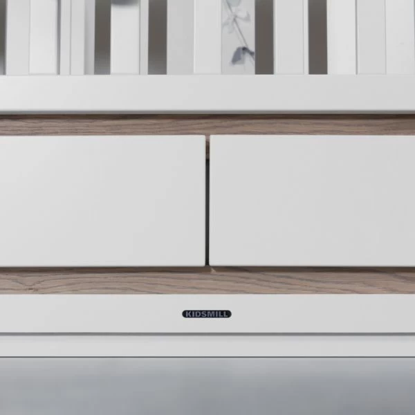 HetKidsmill Accent Babybed Wit 70 x 140 cm past perfect bij de andere meubels uit de serie Accent Wit. Het bed is gemaakt van hoogwaardig materiaal en heeft twee greeploze lades van MDF met genoeg ruimte voor het opbergen van diverse spulletjes. Boven en onder de lades zijn er mooie fineer accenten. Er wordt een lattenbodem bij het bed geleverd die in hoogte verstelbaar is zodat je kindje altijd op de juiste hoogte slaapt. Het mooie is dat wanneer je kindje het bed is ontgroeid je deze om kunt bouwen naar een juniorbed dankzij de meegeleverde juniorzijde. Heel handig dus!