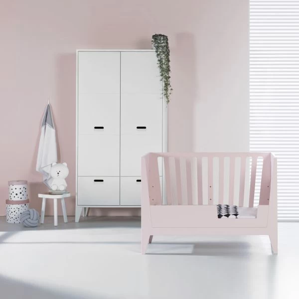 Het Kidsmill Nikki Babybed 60 x 120 cm is een echte eyecatcher voor in de babykamer. De zijwanden van het ledikant hebben een trapezevorm wat voor een speels effect zorgt. Het ledikant is gemaakt van hoogwaardig materiaal en wordt geleverd inclusief lattenbodem en juniorzijde. De lattenbodem is verstelbaar in drie hoogtes en groeit dus met je kindje mee. Het is aan te raden om de bodem op de laagste stand te zetten wanneer je kindje zelfstandig kan draaien, zo rolt hij of zij niet uit het ledikant. Door middel van de juniorzijde kan je het ledikant ombouwen naar een juniorbed. Verder kan het ledikant wel tegen een stootje en is het goedgekeurd volgens Europese veiligheidseisen.