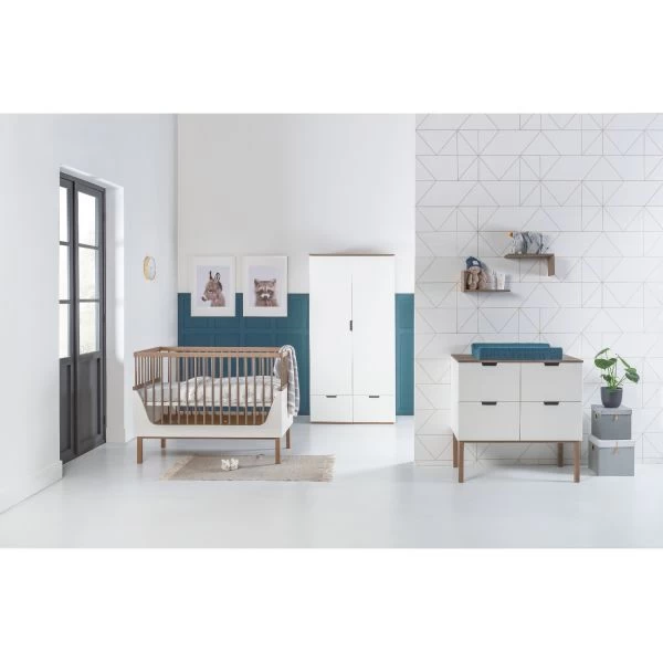 De Kidsmill Sepp Commode biedt met vier lades genoeg ruimte voor het opbergen van diverse spulletjes zoals verzorgingsproducten en luiers. De handgrepen van de commode zijn als openingen in de ladefronten gemaakt en zorgen voor een speels effect. Doordat de lades zijn voorzien van soft closing kun je de lades geruisloos sluiten. De commode is gemaakt van stevig materiaal en voldoet aan de Europese veiligheidseisen. Het commodeblad biedt genoeg ruimte om je kindje te verschonen of te wassen. Met behulp van de apart verkrijgbare bladvergroter is het mogelijk om het werkblad van de commode te vergroten. De Kidsmill Sepp Commode is uitstekend te combineren met andere meubels van de Sepp serie.