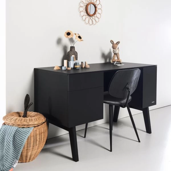 Het Kidsmill Sixties Bureau Zwart is een aanwinst voor de kamer van je kind. Het bureau heeft een origineel design dankzij de uitstaande poten. Herken jij ook de jaren ‘60 in het ontwerp van dit bureau? Het bureau is uitgevoerd met het “push open” systeem en voldoet aan de Europese veiligheidseisen.