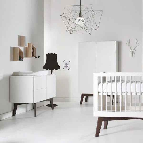 De Sixties Commode is stijlvol en beschikt over veel opbergruimte. Dankzij het grote commode blad kun je jouw kindje gemakkelijk en comfortabel verschonen. De laden zijn voorzien van het handige “Push open” systeem. De Sixties commode is gemaakt van hoogwaardig MDF en plaatmateriaal. De donkerbruine pootjes zijn gemaakt van grenenhout.