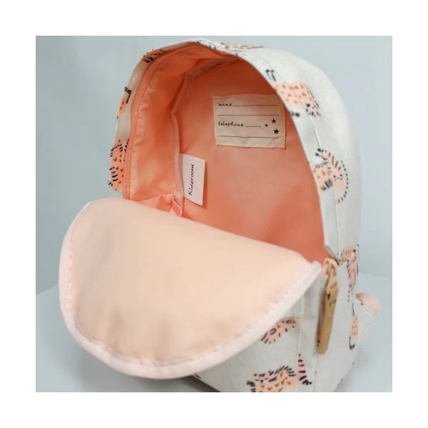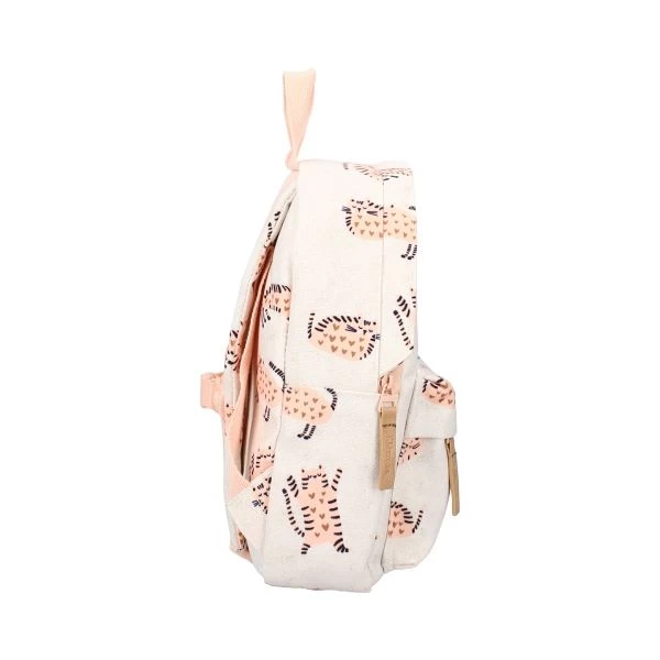 De Kidzroom Stories Rugzak – Sand is bedrukt met een schattige kattenprint. De rugzak heeft een handig ritsvak aan de voorkant met ruimte voor kleinere spullen die je mee wilt nemen. Het grote hoofdvak heeft een handige dubbele ritssluiting en biedt ruimte voor bijvoorbeeld een broodtrommel of extra setje kleding. Handig als je kindje de rugzak mee naar school neemt. De rugzak kan gedragen worden aan de lus aan de bovenzijde of op de rug met de verstelbare schouderbanden. De rugzak heeft aan de binnenkant een label voor naam en telefoonnummer, zodat iedereen weet van wie deze trendy rugzak is. Het heeft ook een elastisch insteekvak voor een drinkfles om te voorkomen dat het wegglijdt. Deze rugzak is gevoerd voor een betere kwaliteit en een langere levensduur.