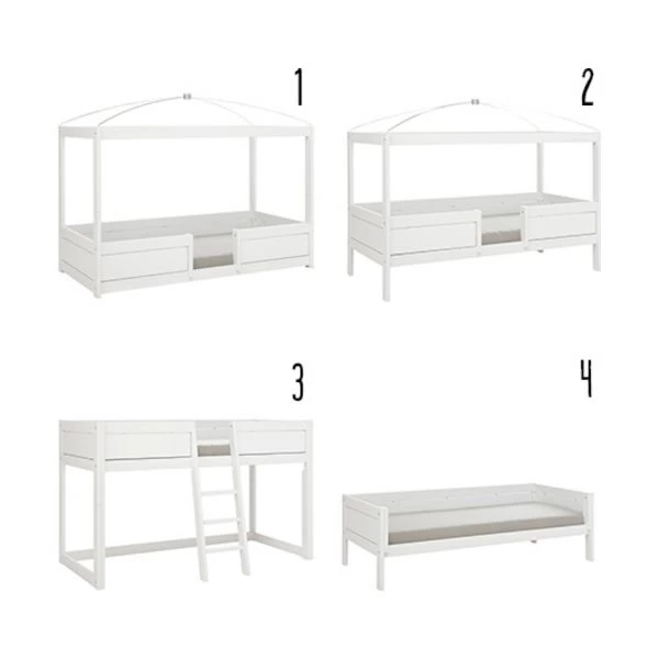 Met het LIFETIME Kidsrooms 4 in 1 bed ben je voor altijd klaar. Het groeit namelijk met een kind mee. Het begint heel laag op de grond en uiteindelijk wordt het een normaal basisbed. Zo kan het kind altijd slapen in hetzelfde bed.