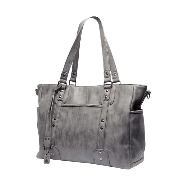 De Little Company Paris Studs Luiertas Grijs is een ruime luiertas met verschillende opbergvakken, waarin je al je spullen kwijt kunt. De tas is gemaakt van PU leer, waardoor deze makkelijk schoon te maken is. Bij de luiertas worden er verschillende accessoires meegeleverd waaronder een verschoningsmatje, verstelbare schouderriem, 2 kinderwagenhengsels en een keycoard hanger. Met behulp van de kinderwagenhengsels kun je de luiertas eenvoudig bevestigen aan de duwbeugel van de kinderwagen.