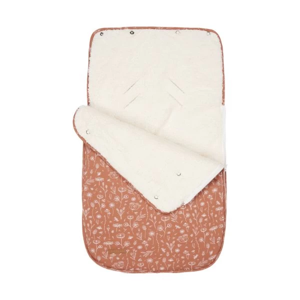 Deze Little Dutch Wild Flowers Voetenzak Rust is erg handig om te gebruiken in een groep 0 autostoeltje of buggy. De binnenzijde is gevoerd met zacht ‘sheep-skin’ materiaal wat je kindje goed op temperatuur houdt. Ook beschikt de voetenzak over handige openingen waar de gordels van een autostoeltje of buggy veilig doorheen kunnen. Aan de zijkanten is de voetenzak open te ritsen zodat het kindje makkelijk in de voetenzak neergelegd kan worden.