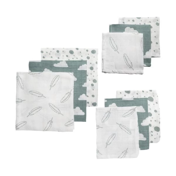 Meyco Feather / Clouds / Dots Hydrofiel Starterset Stone Green