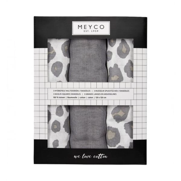 Meyco Panter Swaddle Neutral / Uni Grijs 3 Stuks