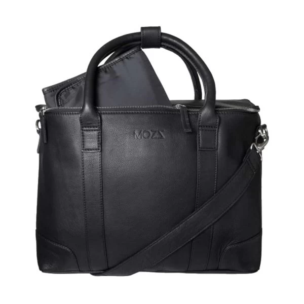 De Mozz Bags Beloved Barca Luiertas Black is een handige luiertas met veel opbergruimte. De tas is voorzien van een stijlvol ontwerp met aan de binnenkant twee grote vakken waar je luiers, flesjes, speeltjes en hydrofiel luiers in kwijt kunt. Ook bevinden zich aan de binnenkant 3 elastische opbergvakken zodat je ook de kleine spulletjes veilig en georganiseerd kunt opbergen. Aan de achterzijde van de tas bevind zich nog een rits vak die geschikt is om bijvoorbeeld een telefoon in op te bergen. Bij de tas wordt een verschoningsmatje en een schouderband meegeleverd, zodat je de tas comfortabel met je mee kunt dragen. Daarnaast is het met de schouderband mogelijk om de tas aan de kinderwagen te hangen. Verder is de tas gemaakt van leer dat lange tijd mee gaat.