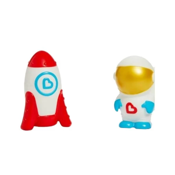 Met het Munchkin Galaxy Buddies Badspeelgoed kan je kindje zich heerlijk vermaken in bad. Het speelgoed bestaat uit 2 figuurtjes, een astronaut en een raket. De speeltjes zijn voorzien van LED-licht wat gaat branden wanneer het speeltje aangeraakt wordt of wanneer het in het water komt. Door met de figuurtjes te spelen worden de vaardigheden en fantasie van je kindje gestimuleerd en wordt badderen een feestje. Verder is het badspeeltje gemaakt van hoogwaardig materiaal en veilig voor je kindje om mee te spelen.