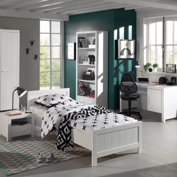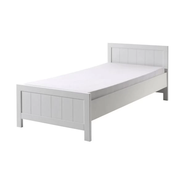 Het Vipack Erik Bed Wit 90 x 200 cm kenmerkt zich aan het verticale reliëfstructuur op de fronten met daaromheen een omlijsting. Het hoofdbord is hoger dan het voetenbord. Het bed heeft een eenvoudig design en kan met verschillende stijlen gecombineerd worden. De lattenbodem wordt niet bij dit bed meegeleverd.