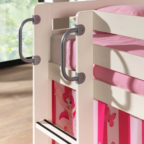 Het Vipack Pino Veiligheidsset is een handig set om bij de halfhoogslaper of hoogslaper van de Vipack Pino collectie bij te kopen. Dit set is extra veilig en wordt geleverd met twee handgrepen die aan de trap bevestigd kunnen worden. Daarbij worden er stukken van antislip materiaal die precies passen op de treden van de Pino bedden.